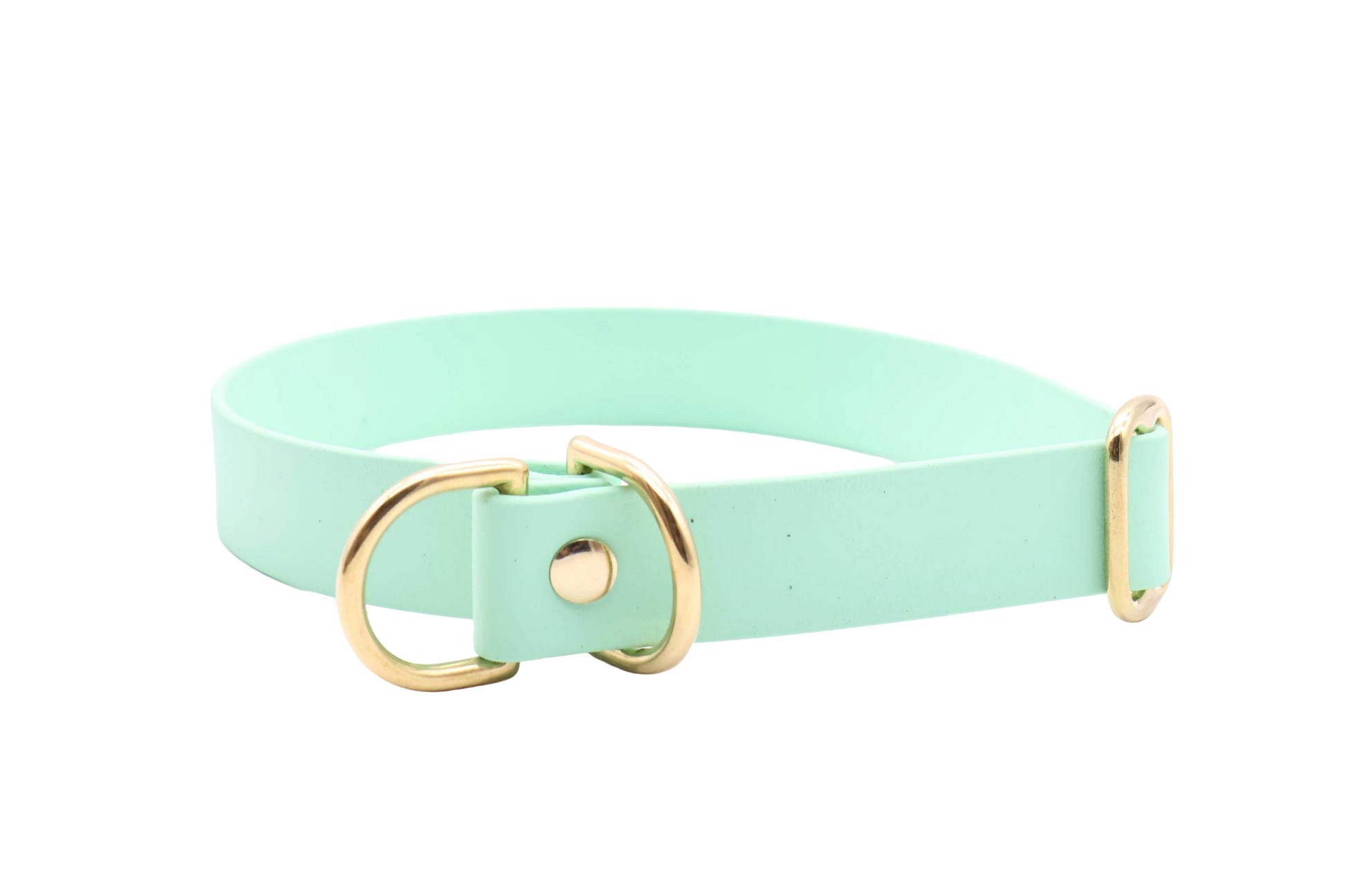 Einfarbiges Zugstopp Halsband aus Biothane. Robust, langlebig, pflegeleicht, sicher und angenehm zu tragen. Individuell angefertigt.