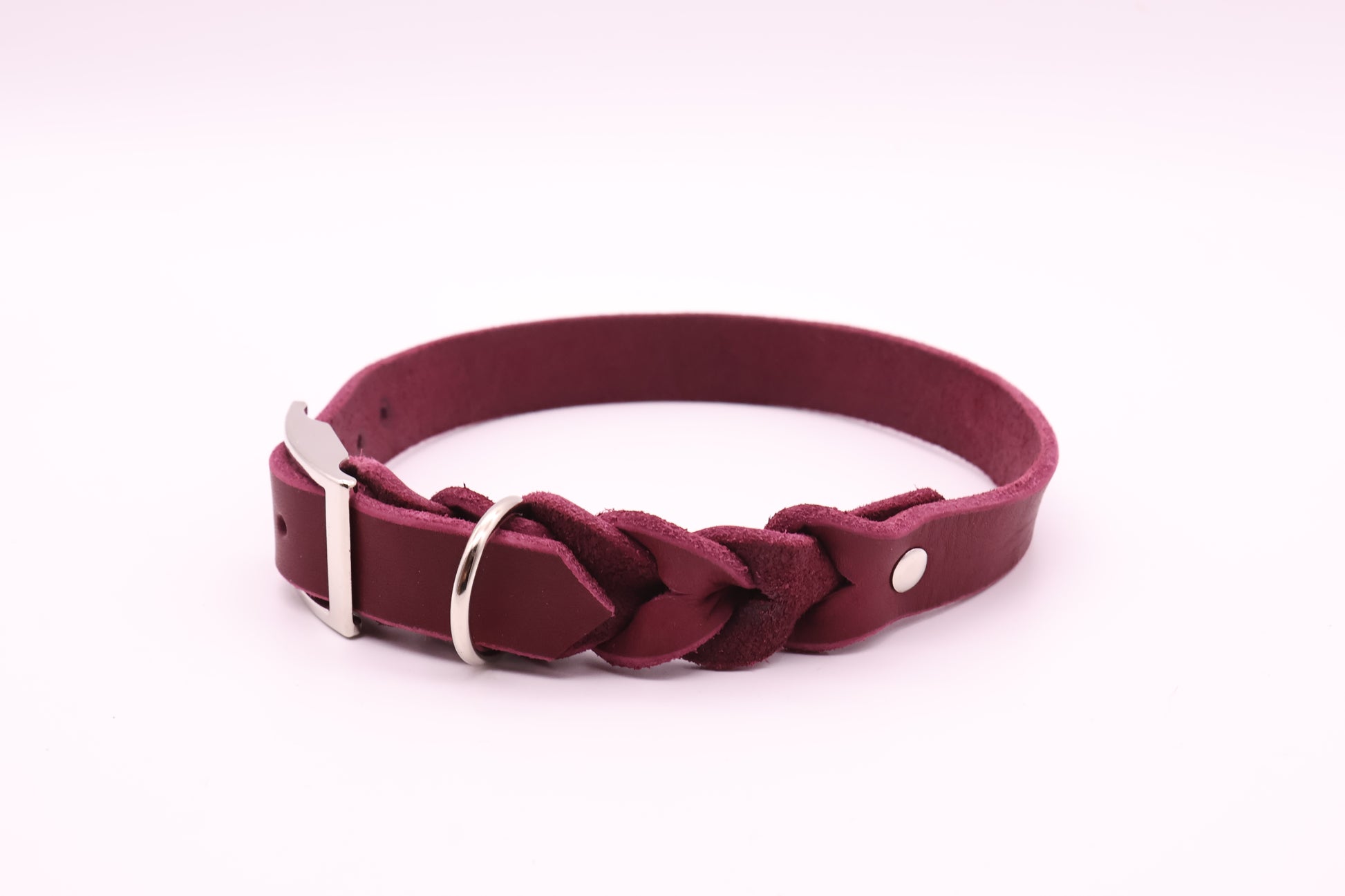 Einfarbiges Halsband aus Leder, inklusive unserem selbst entwickelten Verstellsystem* für perfekte Passform. Robust, langlebig, pflegeleicht, sicher und angenehm zu tragen. Individuell angefertigt.