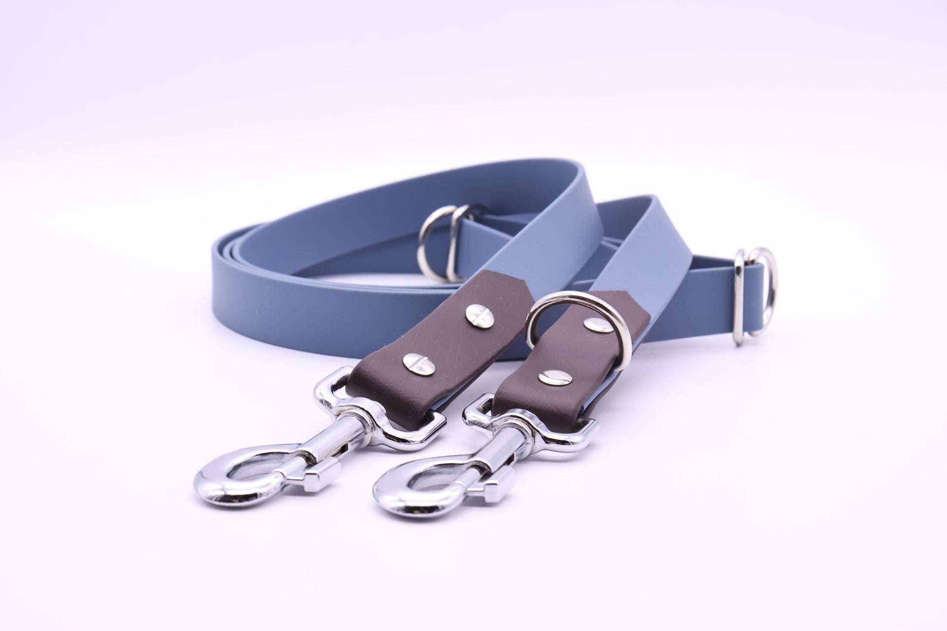 Zweifarbige Biothane-Leine. Dreifach und stufenlos verstellbar.